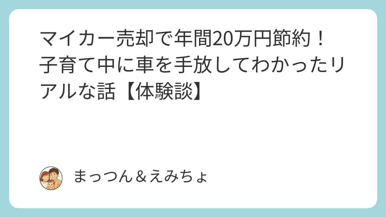 車を手放すって、最初はかなり勇気がいる決断でした。でも振り返ってみると、わが家にとっては間違いなくプラスの選択でした。